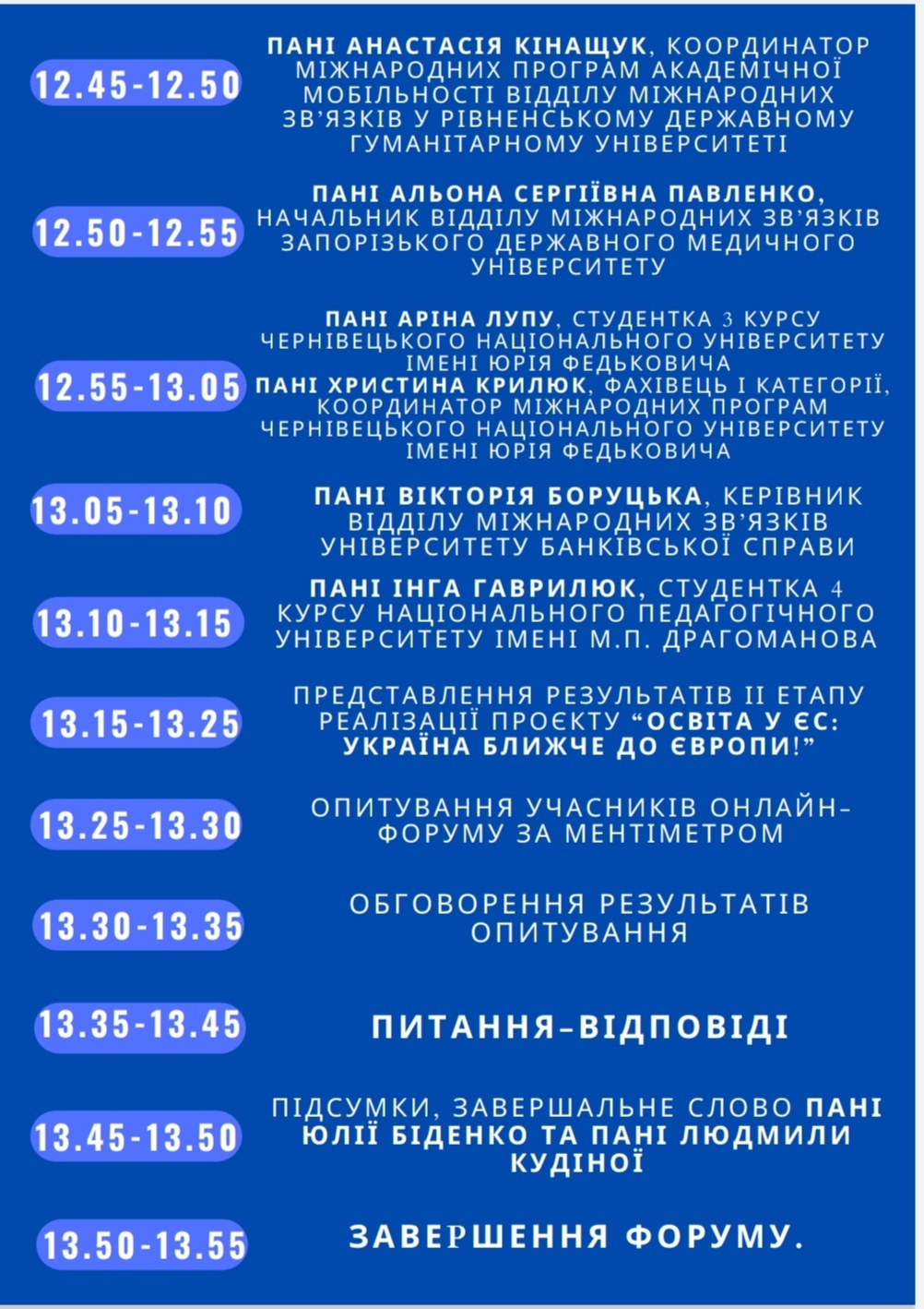 В ході форуму учасники ознайомилися з індивідуальними можливостями Програми ЄС Еразмус +, які були представлені у проєкті ЄС «Мережа Національних Еразмус + офісів в Україні та Національною командою експертів з реформування вищої освіти».